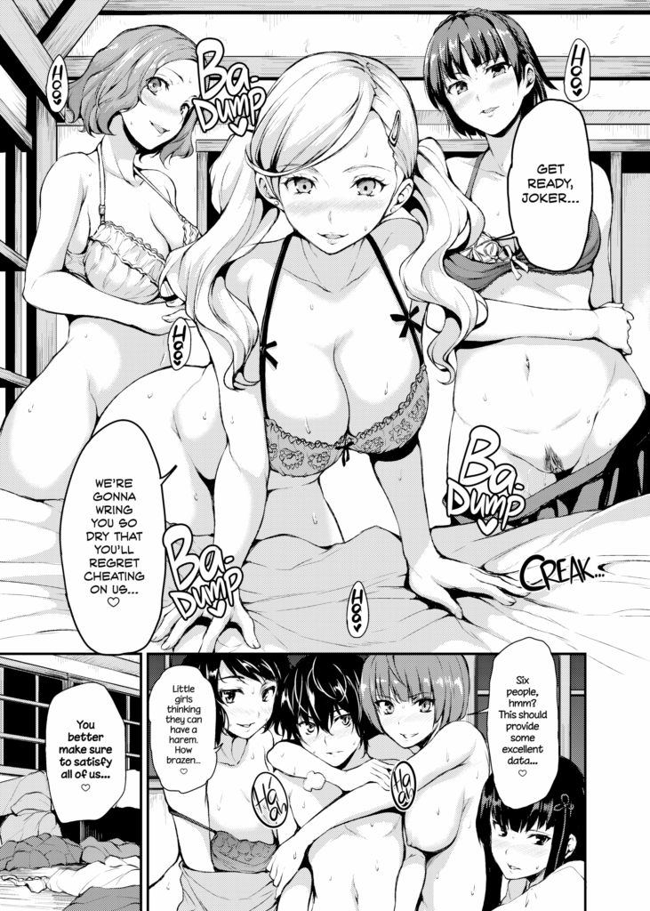 A cum-filled orgy of the six main romanceable girls (minus Futaba) from Persona 5, courtesy of the rogue doctor Takemi and a sexual enhancement pill.